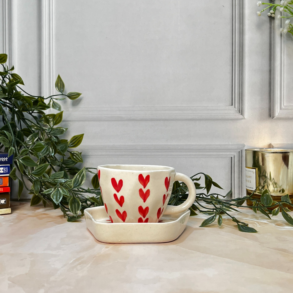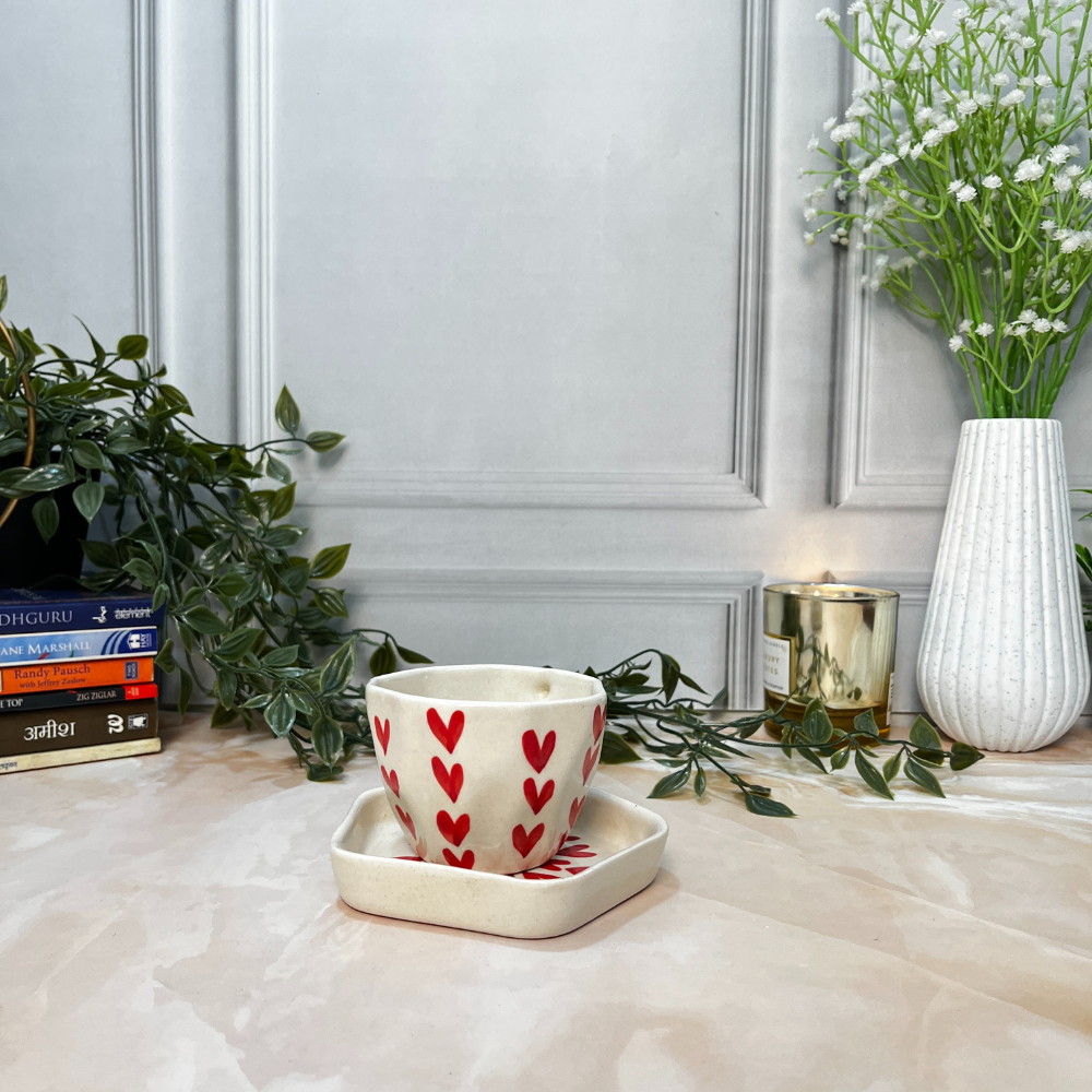 Lovergirl Tea Cup with Saucer – Red Heart Ceramic Cup by Tavasyya