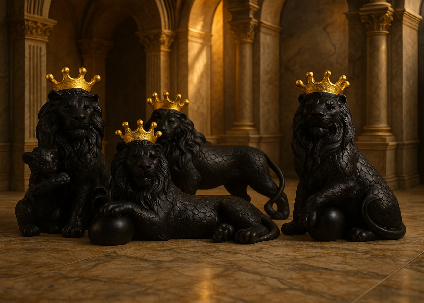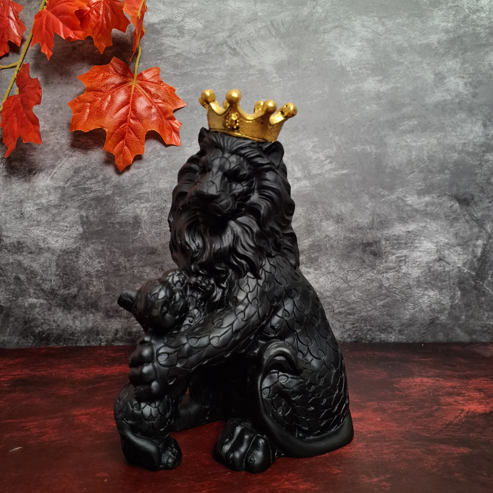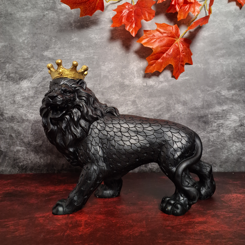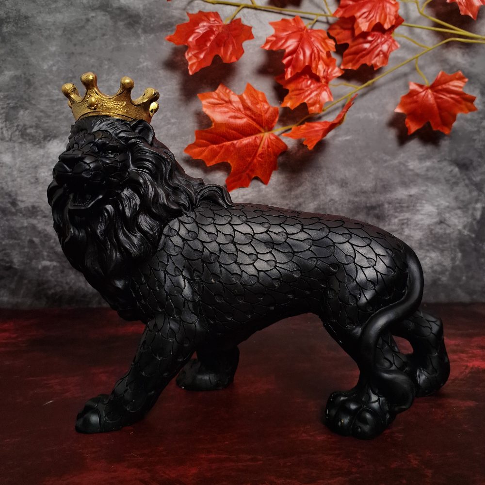 The matte black and gold lion showpieces elevate any interior with their regal presence. A resin lion figurines set of 4 creates a cohesive decorative theme for living rooms or office corners. These luxury home decor products are designed to enhance regal lion set for living room aesthetics while bringing feng shui lion sculptures for protection and vastu lion figurines for prosperity into your space.